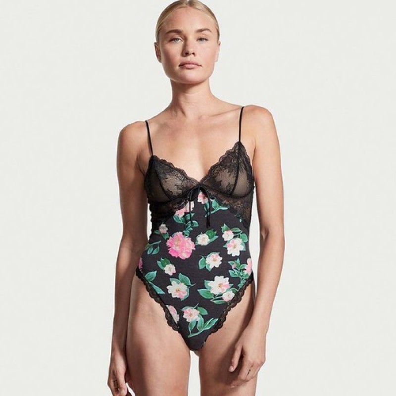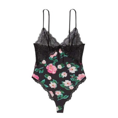 Body Victoria’s Secret Very Sexy com Botão na Base 132060QD5 Cor Preto com Flores Tamanho S